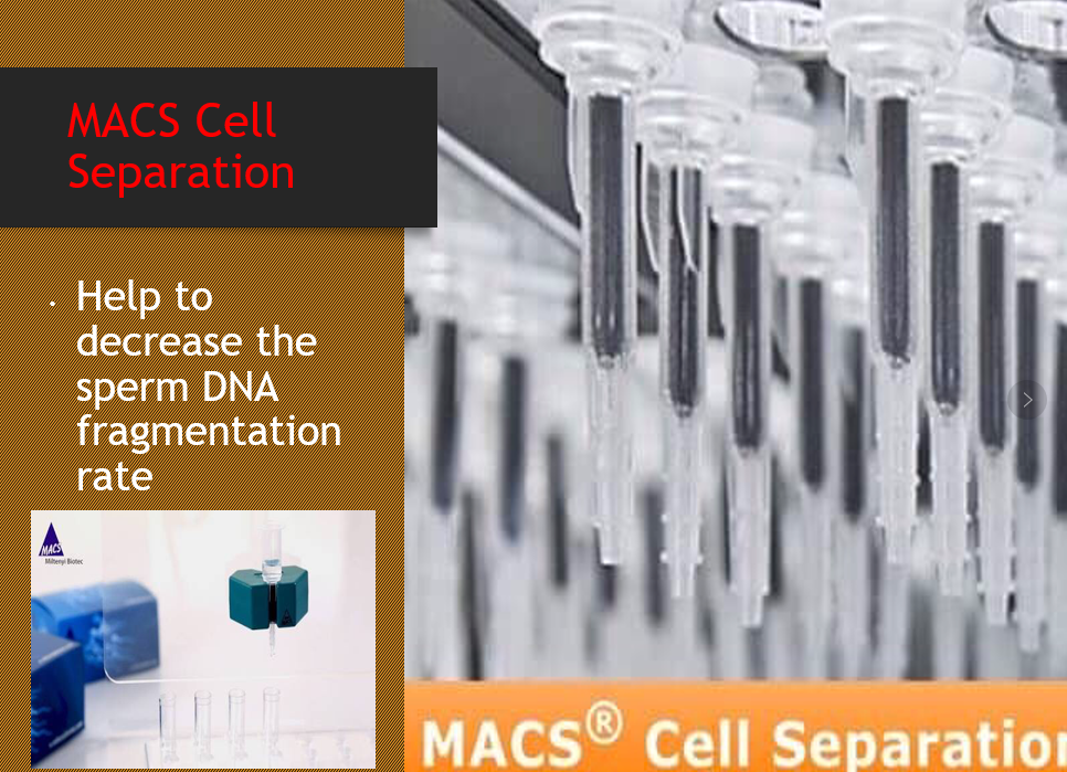 MACS SPERM 磁筛精子是一种选择高质量精子的技术手段。 可以有效淘汰碎片率高的精子,优选高质量精子,减少卵子不必要的损耗,提高精卵结合率。