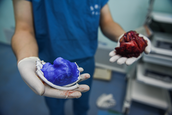 主刀医师,唐都医院胸外科副主任黄立军介绍:“为了保证手术的成功,在术前我们就对患儿的病灶进行了影像学分析,并根据影像打印出了孩子的胸骨模型和病灶模型。