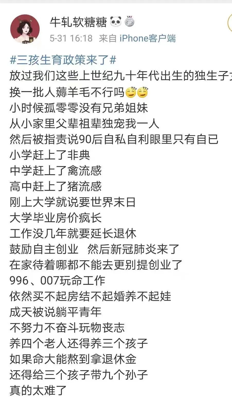 彼之砒霜,吾之蜜糖。三胎,对大多数人来说是不小的负担,不愿意生,但是对有的人来说,生孩子却是最奢侈的梦想。